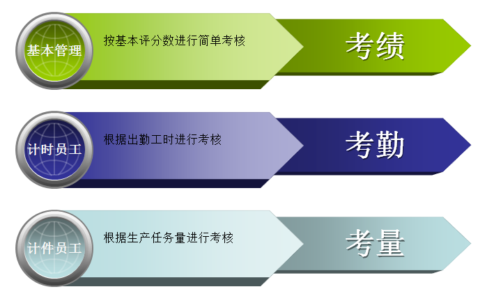2019-09-26 09:01:13 瀏覽:2442 咨詢電話:400-1800-278企業發展,人才是關鍵,而如何借助人力資源管理系統助力人力資源管理部門提高把好企業用人關,那用好人力資源管理系統就至關重要了,一般人力資源管理系統側重的多為事務層次的數據處理,多為對人員工作時間(考時),計件數量(考量),KPI評比(考績)作手,而此三個層次的考核按以下層次來劃分