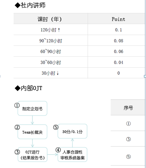 5.對企業內部員工培訓所花費課時來制定了詳細的標準,只有對本部分員工起到良好的傳幫帶作用才能做為一個優秀的領導者,不然你升上去了,你留的空缺怎么辦,如果想升職,你就必須帶出接替你崗位的員工,把你的知識點傳授下去,我們看看該企業的員工所花費的培訓工時是如何為晉升的考核指標的: